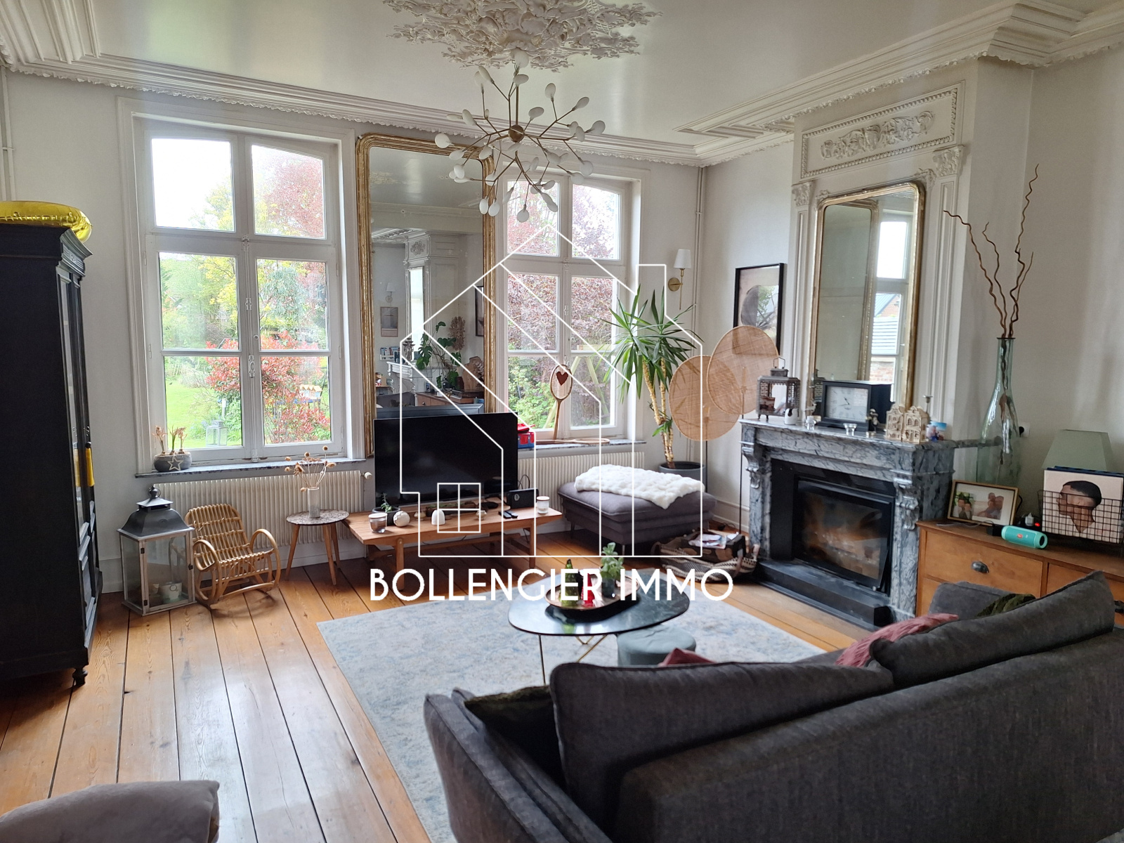 Bourgeoise sur 1100 m² comprenant au RDC : Hall - Salon séjour de 50m² - Cuisine récente - Bureau ou chambre