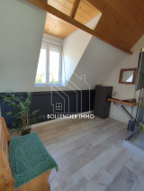 A l'étage : vaste palier (possibilité couchage), salle de bain ( douche), grande chambre parentale