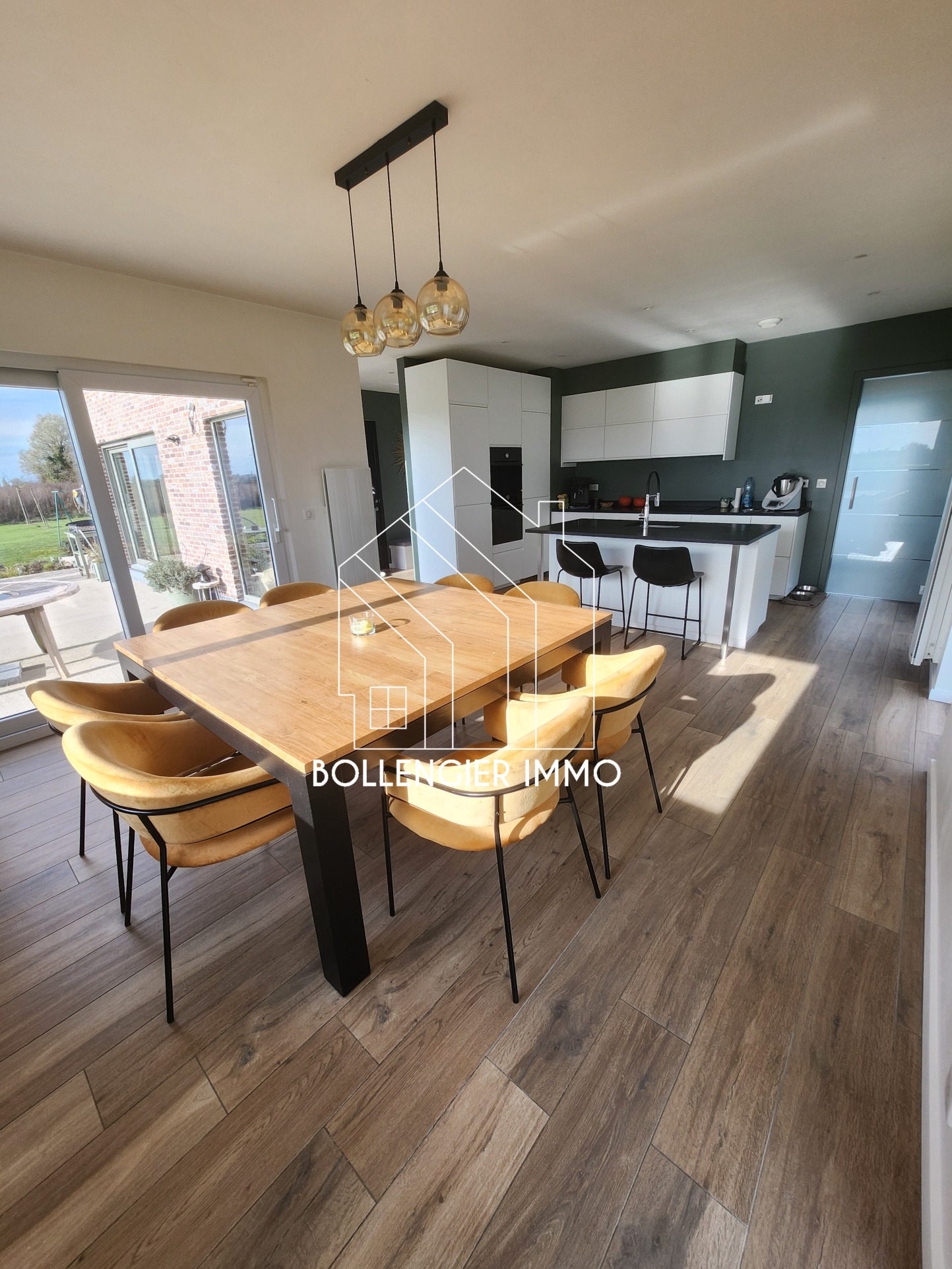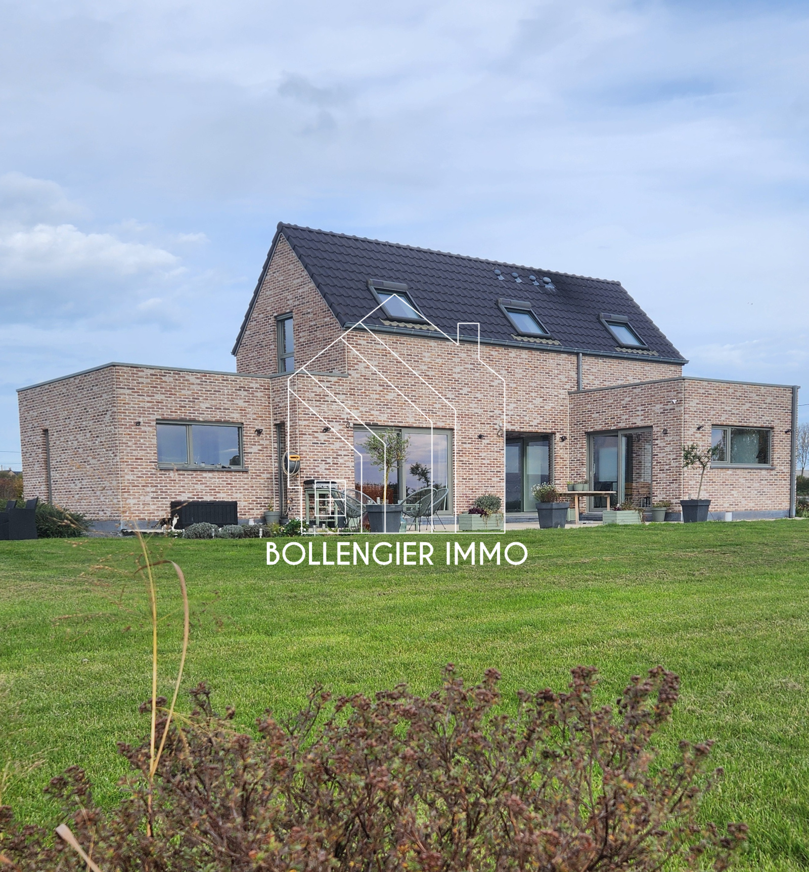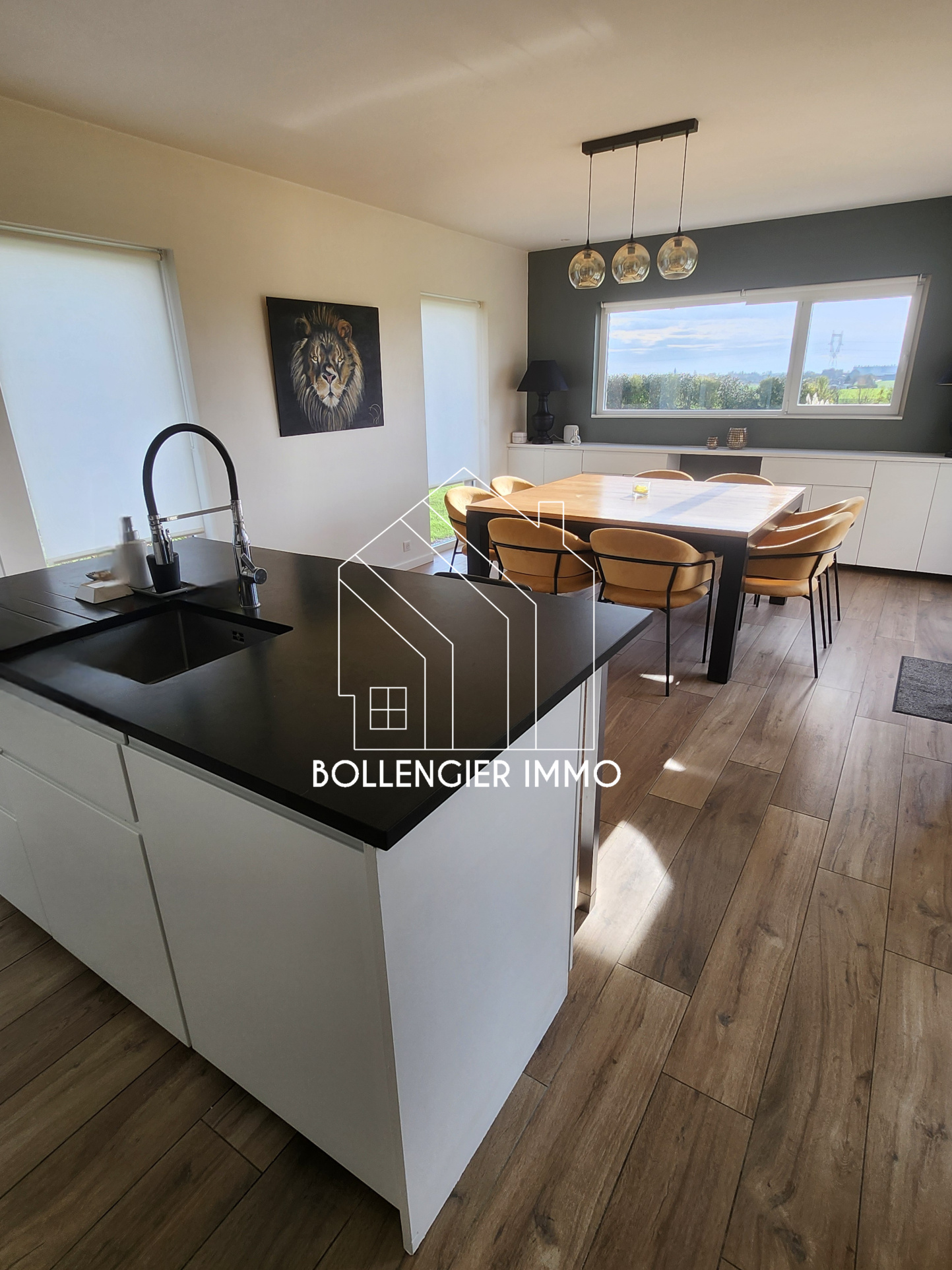 Cette belle maison contemporaine de 2020 est disposée en semi plain-pied, elle est baignée de lumière et offre une vue imprenable sur la campagne.